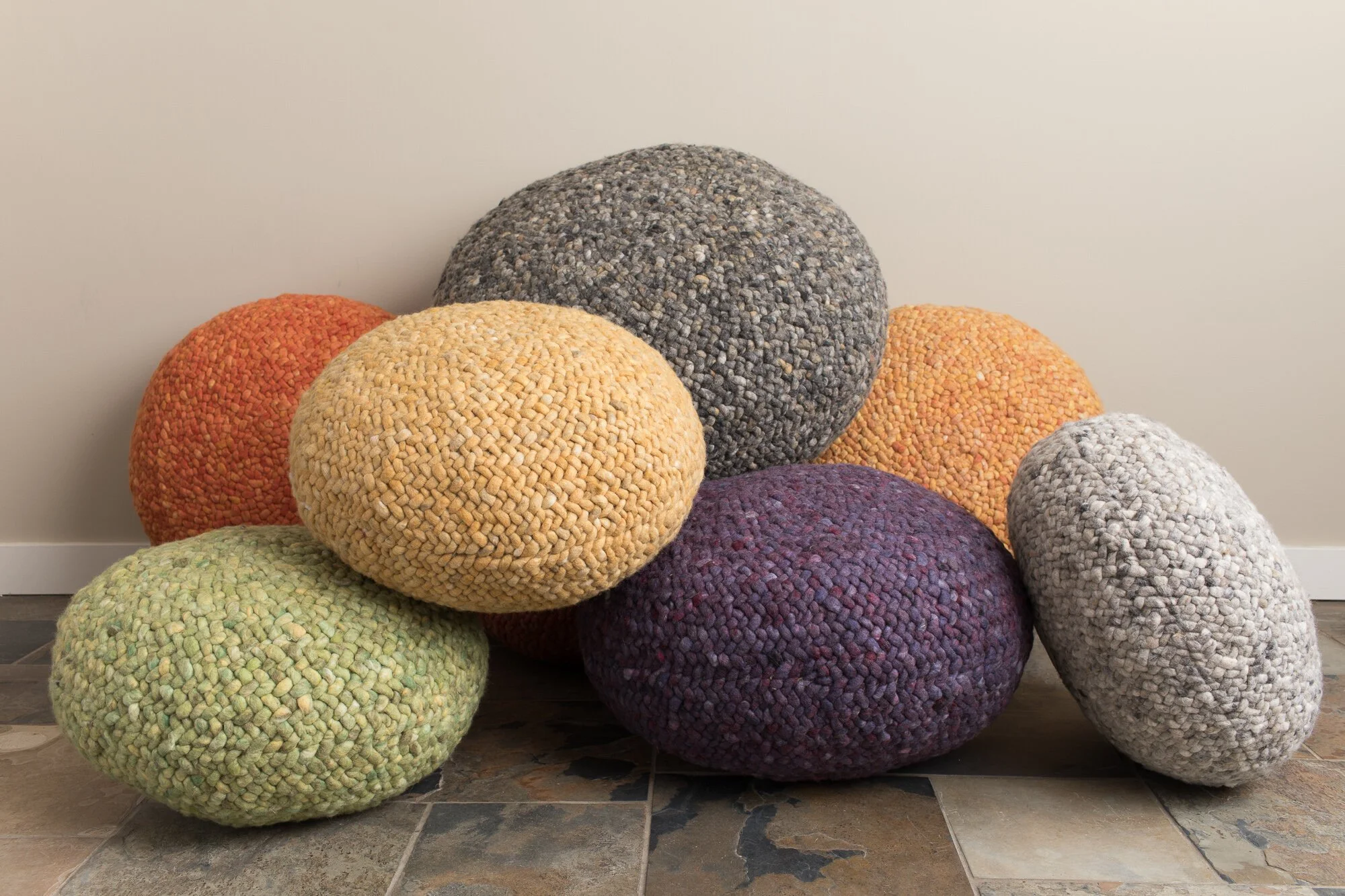 As a whimsical seat or footstool, our woolen poufs are a delightful accent in any room, especially when layered over a Paulig carpet. Carefully hand-woven around a dense core, they are available in three different sizes and thirty colours.